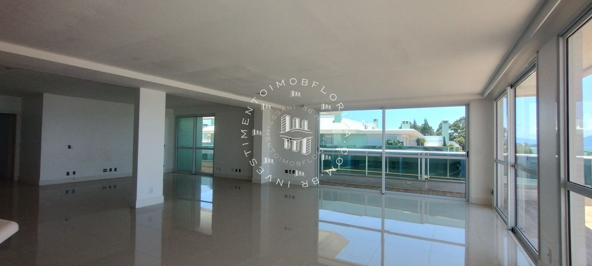 Apartamento com área interna generosa, grande terraço e vista para o mar.