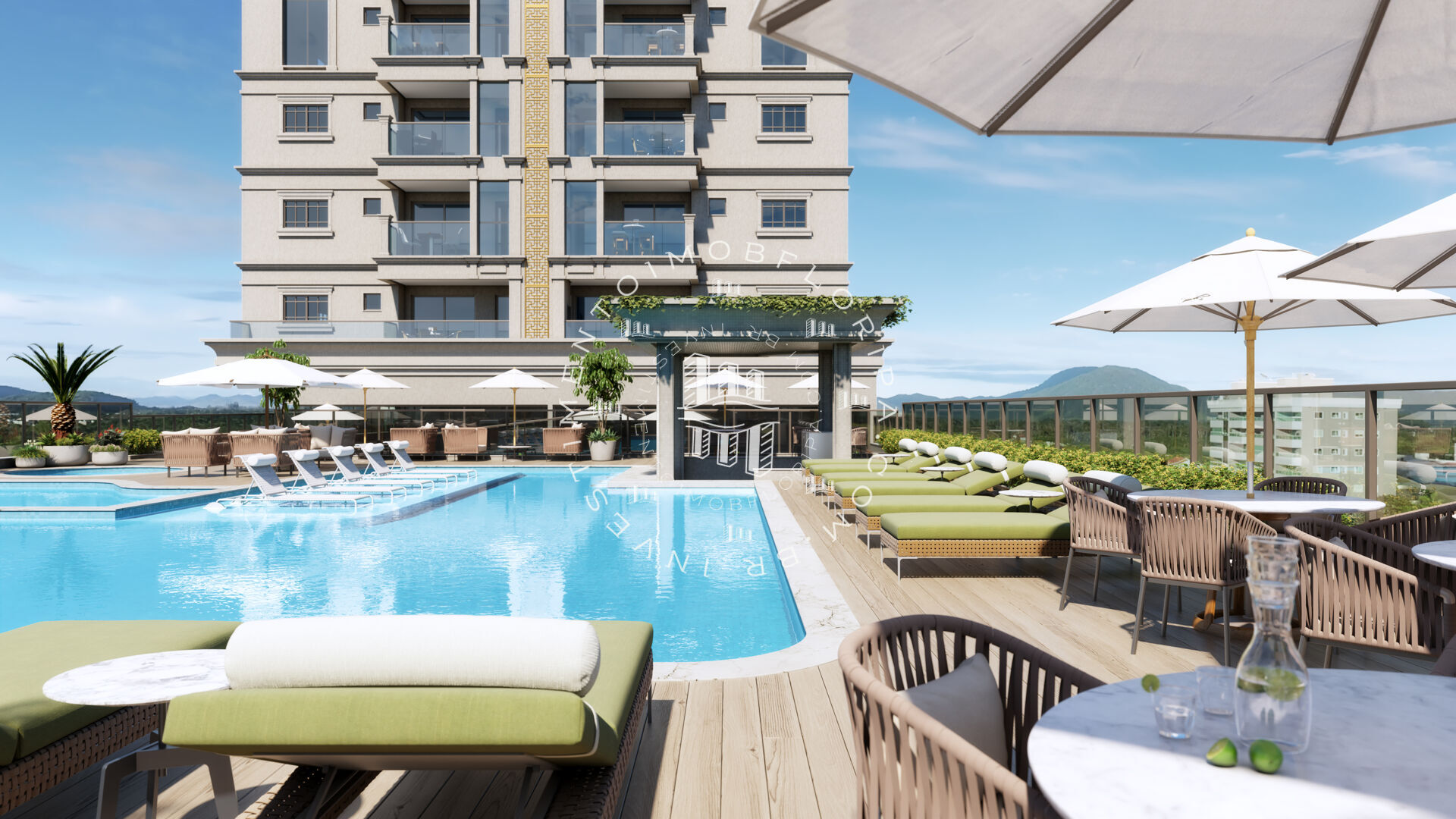- Piscinas adulto e infantil com deck